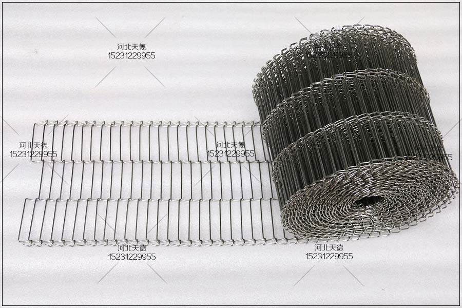 3、扁絲型金屬網帶:此網帶采用軋扁絲制作用曲軸型穿條連接,使各個螺旋金屬絲的位置得正確的定位。減少的延伸度。加工過程中做工精細,表面舒展平整,兩邊平行,材質上等優良。